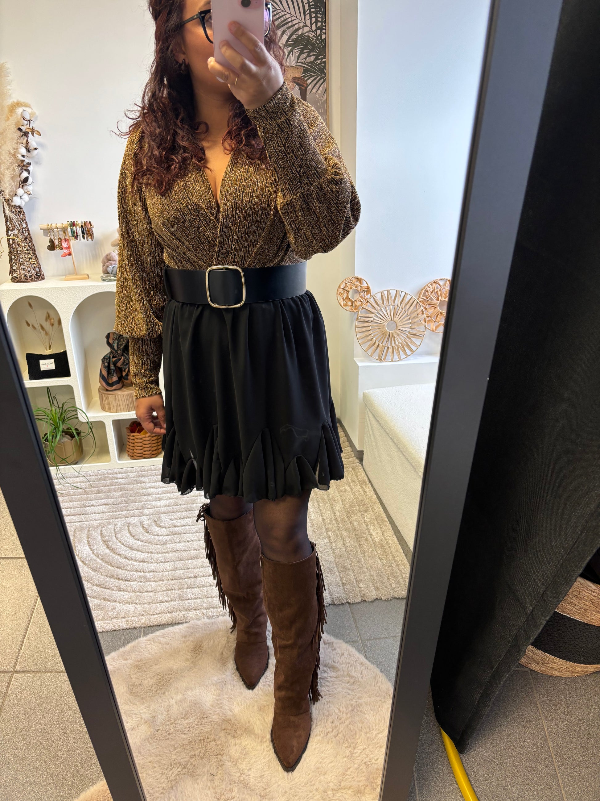 Conseil style ✨ : À porter rentré dans une jupe noire ou un pantalon taille haute avec une ceinture large pour un look de soirée élégant et affirmé.
