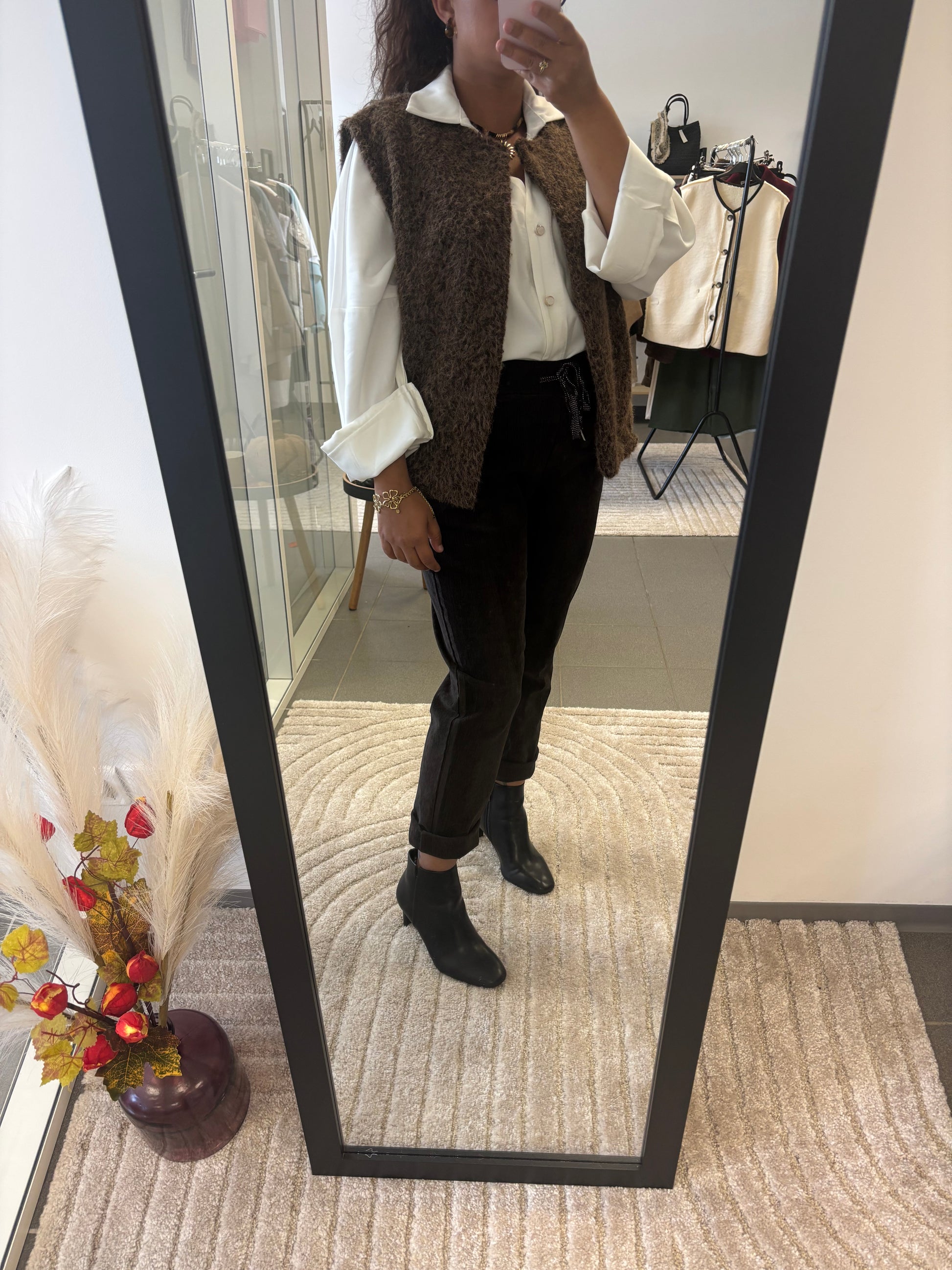 À porter sur une chemise blanche ou un pull col roulé pour un style élégant, ou avec un tee-shirt basique pour une allure plus casual. À associer avec un pantalon en simili ou un jean pour un look tendance.