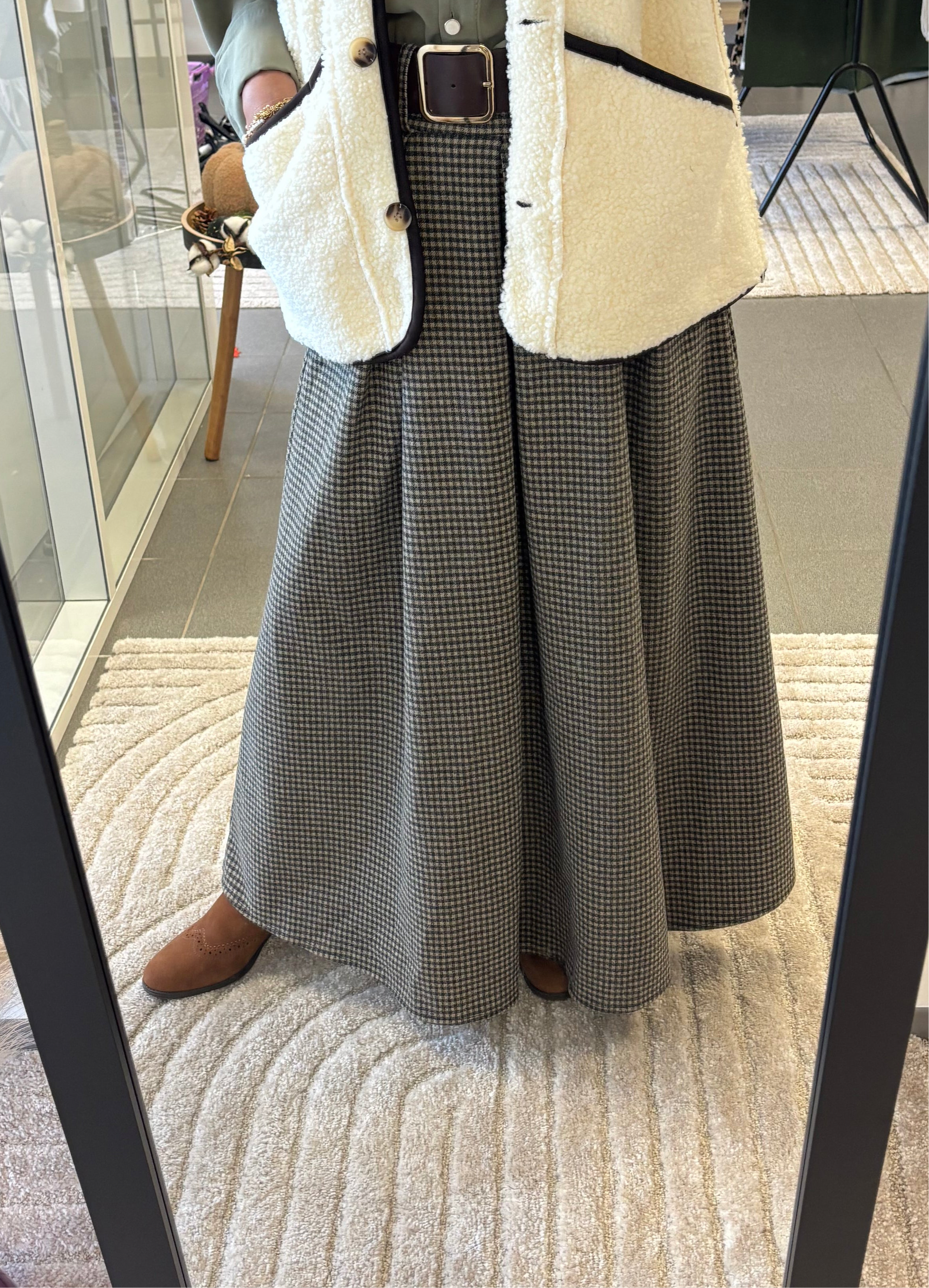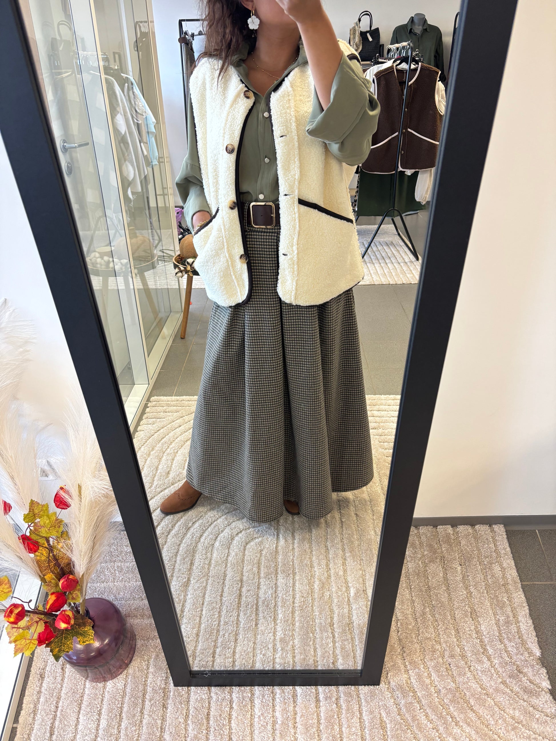 À associer avec une chemise rentrée et un gilet sans manches pour un look tendance, ou avec un pull col roulé et des bottines pour une allure automne/hiver cocooning.