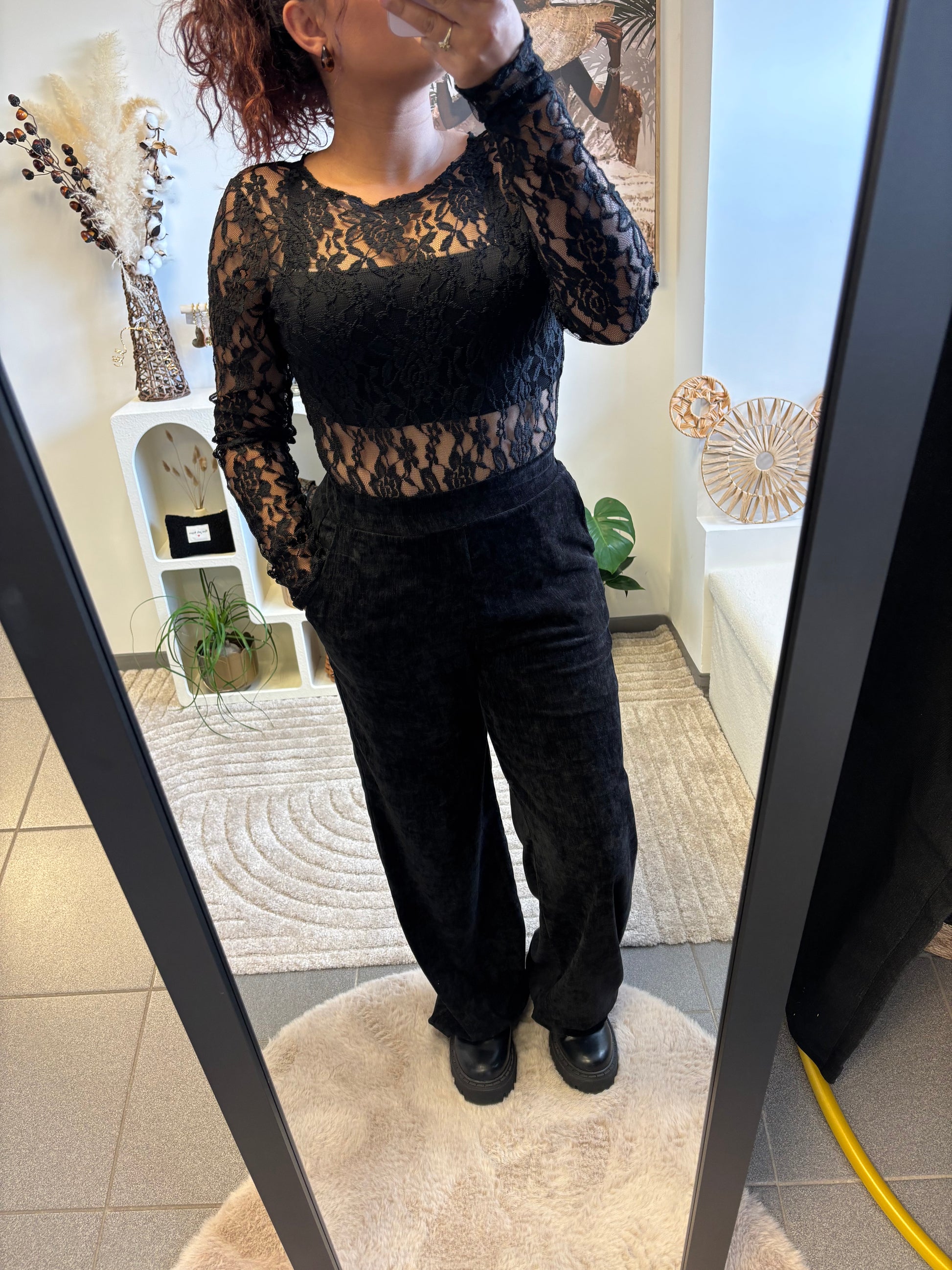 Sa matière velours apporte une touche lumineuse et élégante, tandis que sa coupe fluide allonge la silhouette tout en garantissant un confort absolu.